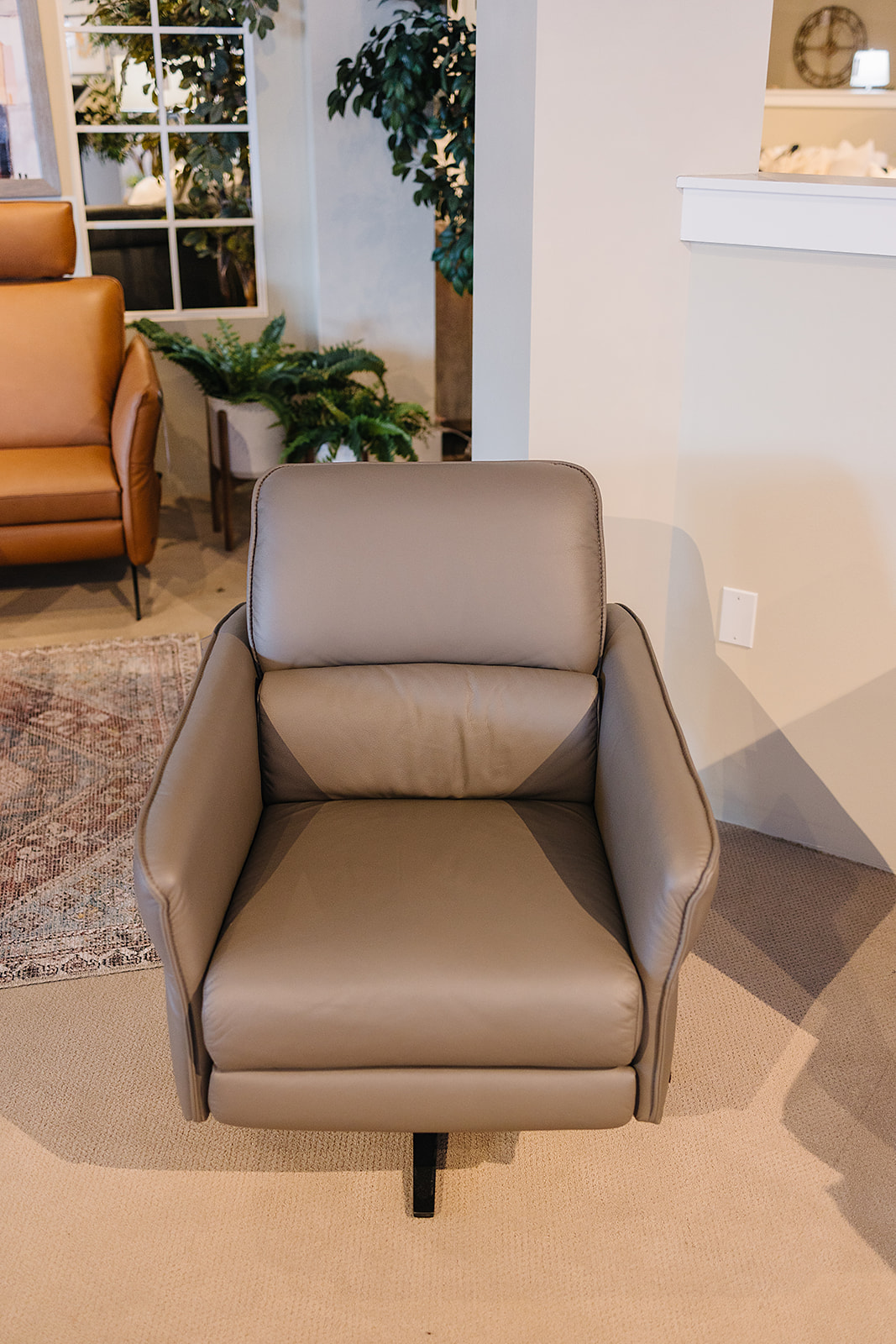 SWIVEL RECLINING LEATHER CHAIR WITH HIDEAWAY HEADREST IN BROWN (CANYON) LEATHER.Read More