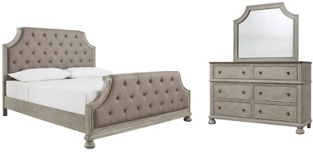 Includes panel bed (headboard, footboard and rails), dresser and mirror