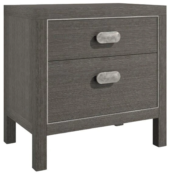 The deep Porcini finish on the Prado dresser is balanced with the gleam of metal details. Two drawers offer storage, with the drawer boxes outlined with an inset metal frame in Bright Graphite finish. A two-port USB charging system is included on the back of the case.Read More