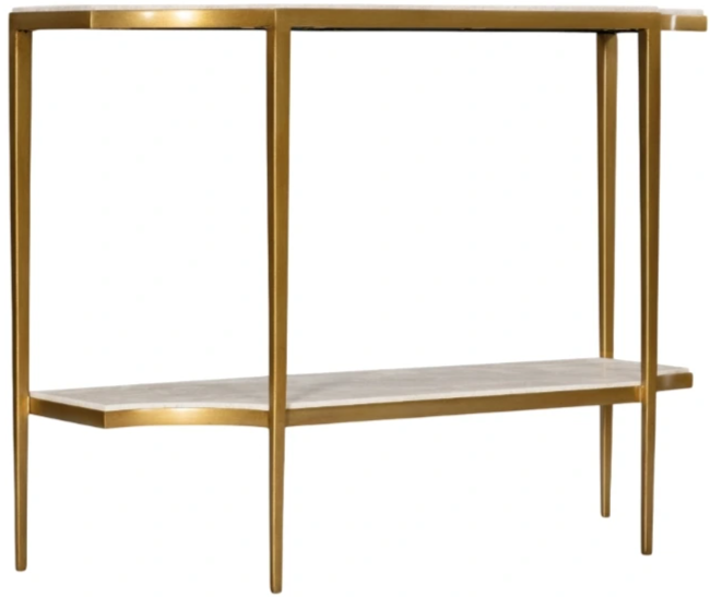 With understated opulence, the delicately-scaled Commerce & Market console table combines white travertine stone on the shaped top and bottom shelf with a gold-colored metal frame. Targeting the next generation of furniture buyers, Hooker Furniture unveils the Commerce & Market brand of accent and occasional pieces.Read More