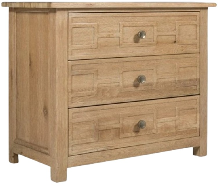 Finished in buckboard, this bachelor's chest highlights a geometric drawer front design with three self-closing drawers, including a cedar-lined bottom drawer. Compact yet functional, it’s perfect as a nightstand or storage piece with a casual yet refined style.Read More