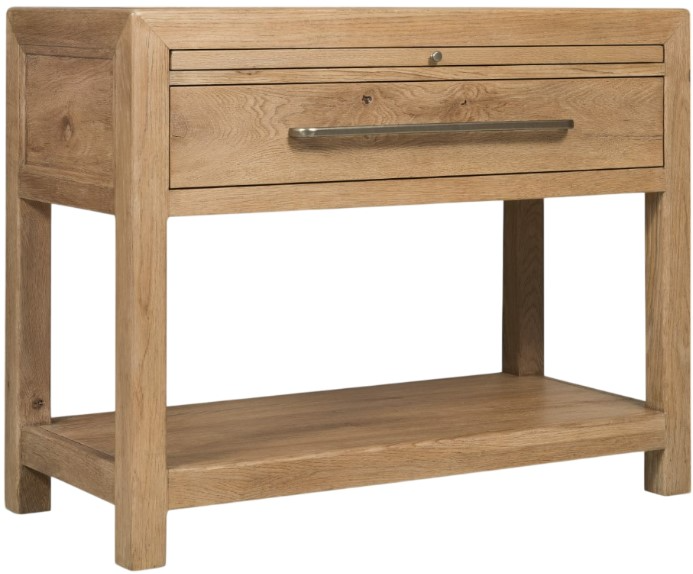 This Buckboard-finished nightstand includes one self-closing drawer, a pull-out tray, and a fixed bottom shelf. The stone top adds both beauty and durability. Striking a balance between heritage craftsmanship and contemporary versatility, where history and refinement are woven into every detail, the 45-piece Driftwood collection is rooted in authenticity.Read More