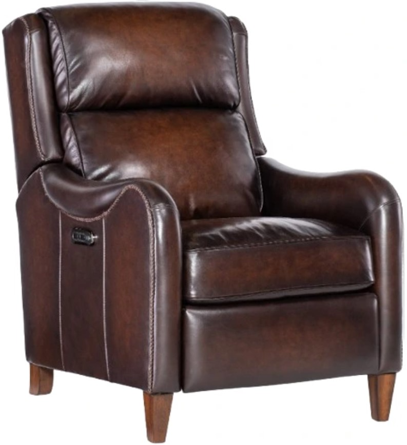Elevate your living room with the Carrington power recliner by Hooker Upholstery. This luxurious piece, upholstered in Vortex semi-aniline leather, epitomizes transitional style with its rich brown hue and sleek silhouette. Boasting both power recline and a power headrest, it offers customizable comfort at your fingertips.Read More