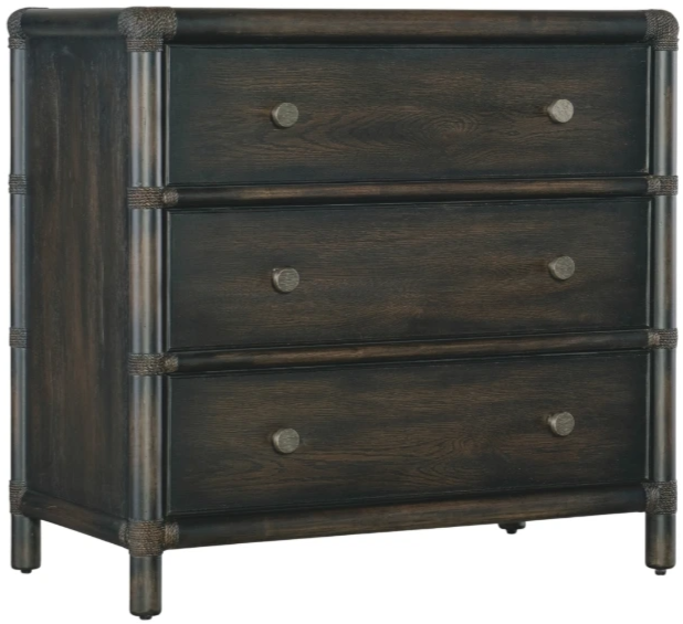 Finish: Black Sand: Transparent by design to showcase the unique grain patterns of the veneer, Black Sand was inspired by the black silk sands found on the shorelines of exotic beaches of Maui and Tahiti. Soft pewter round knobs.
