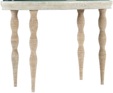 Finish: Surf: light, airy whitewashed oak. Neptune: whitewashed rope wrapping. Painted glass top in blue and yellow tones. Distressing includes sandblasting and wire brushing.
