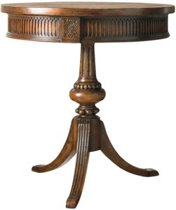 In a vintage 18th Century pedestal table design with pie-shaped top, this piece exudes character with classic fluted, beaded and flared legs. This enticing table is crafted from hardwood solids and walnut veneers.Read More