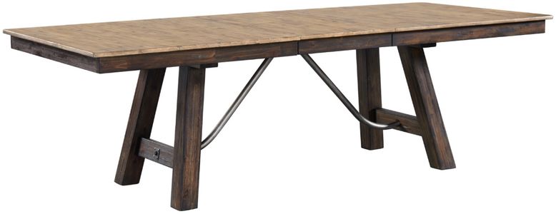 The Transitions Dining Collection is constructed from solid acacia and is offered in a beautifully rustic two-toned driftwood and sable finish. Two extension table options are offered in counter and dining variations, both featuring 20” storing leaves and metal tubular stretchers and accents.Read More