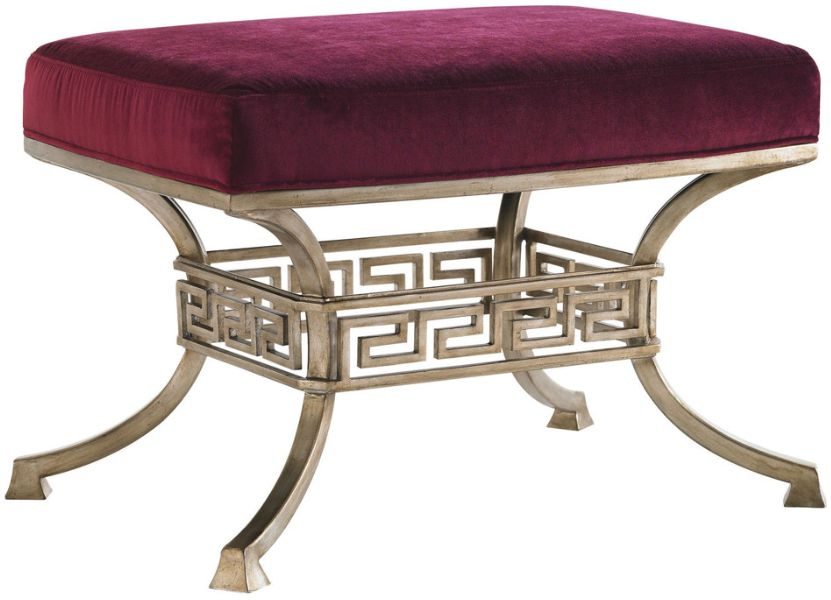 This ottoman presents an exquisite accent at the end of the bed, providing seating when getting ready, or a place for the decorative pillows or bedding not used during the sleeping hours. Although the gold leaf finished metal base is available only as shown, custom leathers may be applied to coordinate with your color scheme.Read More