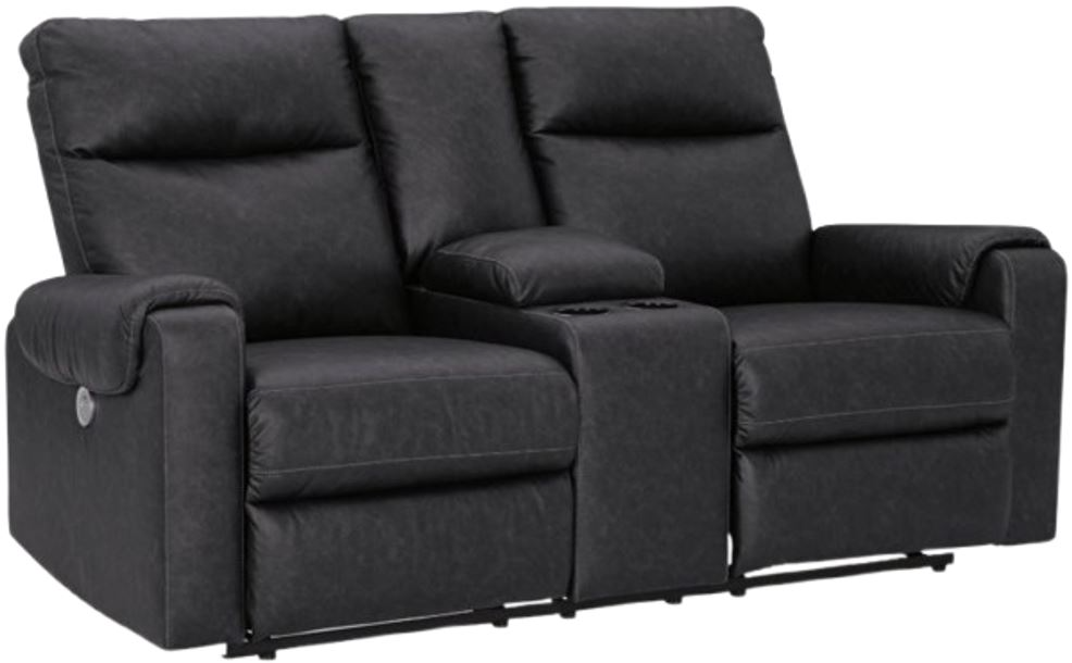 You don’t just want to recline. You want to recline in high design. This power reclining loveseat’s clean lines and supple faux leather are out to capture your heart with style and comfort. Easily tuck away remotes or gaming controllers and keep drinks close by with its handy console.Read More