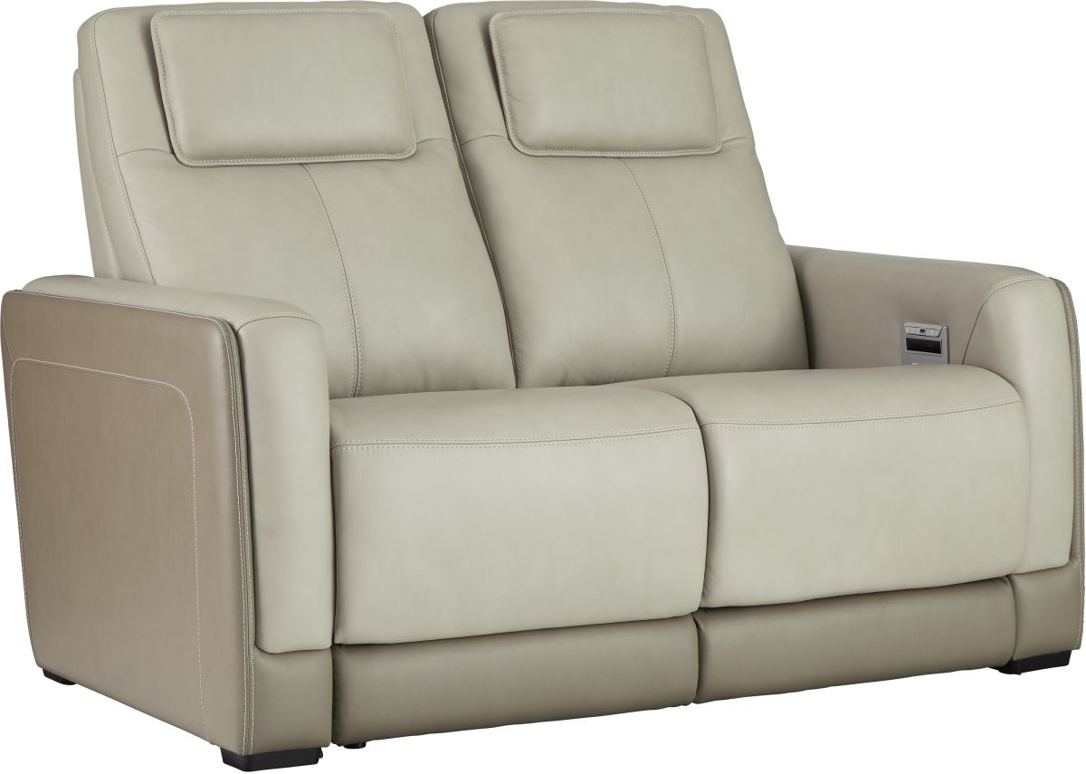 Double down on sleek style with this power reclining loveseat. It has a streamlined, space-conscious appeal, with two-tone upholstery in neutral hues creating subtly striking visual intrigue. And with one-touch reclining, adjustable headrests and wireless charging, this piece combines contemporary function and fashion into a single clean-lined design.Read More