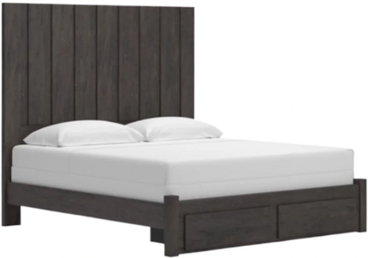 Find serene simplicity in the clean lines and dark neutral tones of this king panel storage bed. It’s a sincere approach to modern elegance, giving you high style at a great value. Short on storage? Smooth-gliding drawers in the footboard keep clutter neatly tucked away.Read More