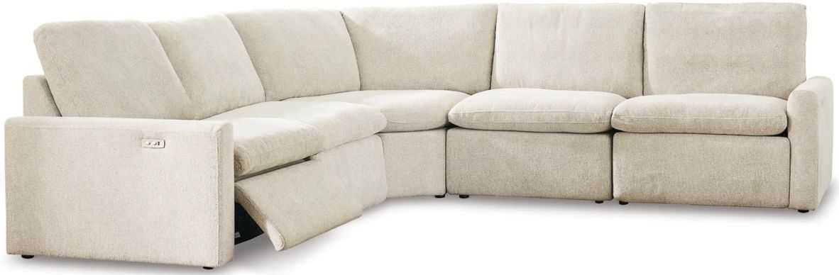 Includes 5 pieces: left-arm facing power recliner, right-arm facing power recliner, armless recliner, armless chair and wedge