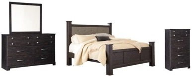 This bedroom set is turning heads with its clean, streamlined vibe. Dark brown finish has a gorgeous distressed effect, adding two-tone visual interest. Large cubbies and drawers provide ample space for your decor and essentials, while nickel-tone accents add a neat touch of shine.Read More