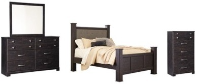 This bedroom set is turning heads with its clean, streamlined vibe. Dark brown finish has a gorgeous distressed effect, adding two-tone visual interest. Large cubbies and drawers provide ample space for your decor and essentials, while nickel-tone accents add a neat touch of shine.Read More